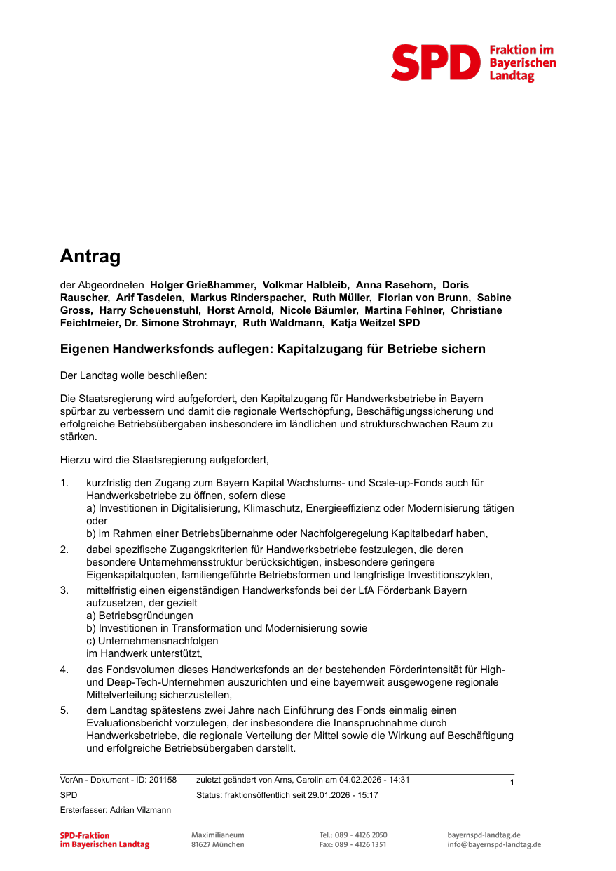 Die Landtags-SPD will Bayerns Handwerk stärken. Dazu braucht es aus Sicht von Fraktionschef Holger Grießhammer eine klare Ergänzung zur bisherigen Wirtschaftsförderung: Während die Staatsregierung allein Hightech-Start-ups im Auge hat, bleibt das Handwerk beim Zugang zu Kapital zu oft außen vor. Grießhammer fordert deshalb einen eigenen Handwerksfonds, der Betriebsgründungen erleichtert, Investitionen absichert und Unternehmensnachfolgen ermöglicht. „Wer Milliarden für Start-ups mobilisiert, muss auch Milliarden für das Handwerk einplanen. Alles andere ist eine politische Schieflage“, betont Grießhammer.
