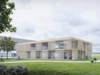 Der Erweiterungsbau befindet sich derzeit in der Vorentwurfsplanung. Städtebaulich fügt sich das Gebäude in die bestehende Struktur der Hochschule ein und verändert die vorhandene Bebauung nur geringfügig. Geplant ist eine Erweiterung des bestehenden Lehrsaalgebäudes durch zusätzliche Räume im Erdgeschoss sowie eine Aufstockung um ein weiteres Geschoss. Damit entstehen moderne, funktionale Lehrsäle mit zeitgemäßer technischer Ausstattung. Die Erschließung erfolgt barrierefrei über einen neuen Aufzug und Treppenräume, zudem sind zwei bauliche Rettungswege vorgesehen.