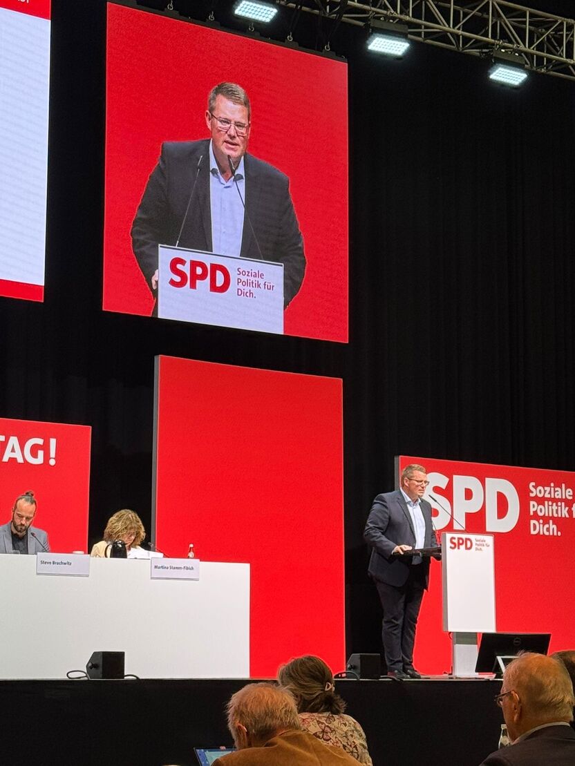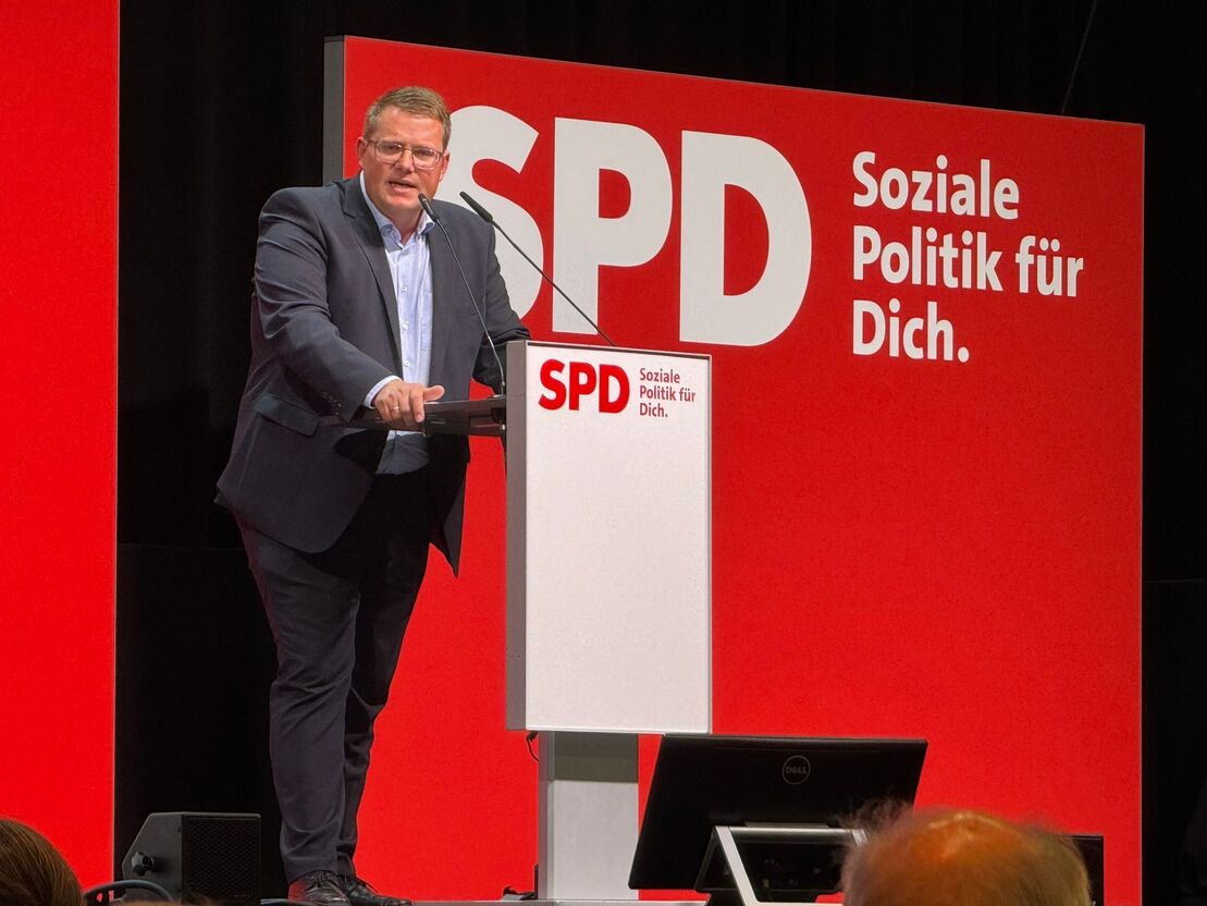 Neben Klingbeil traten auch die Landesvorsitzenden Ronja Endres und Sebastian Roloff ans Mikrofon, um eigene politische Akzente zu setzen. Beide appellierten an soziale Gerechtigkeit durch Erbschaftssteuer über kommunale Herausforderungen bis zur Motivation für den Wahlkampf.