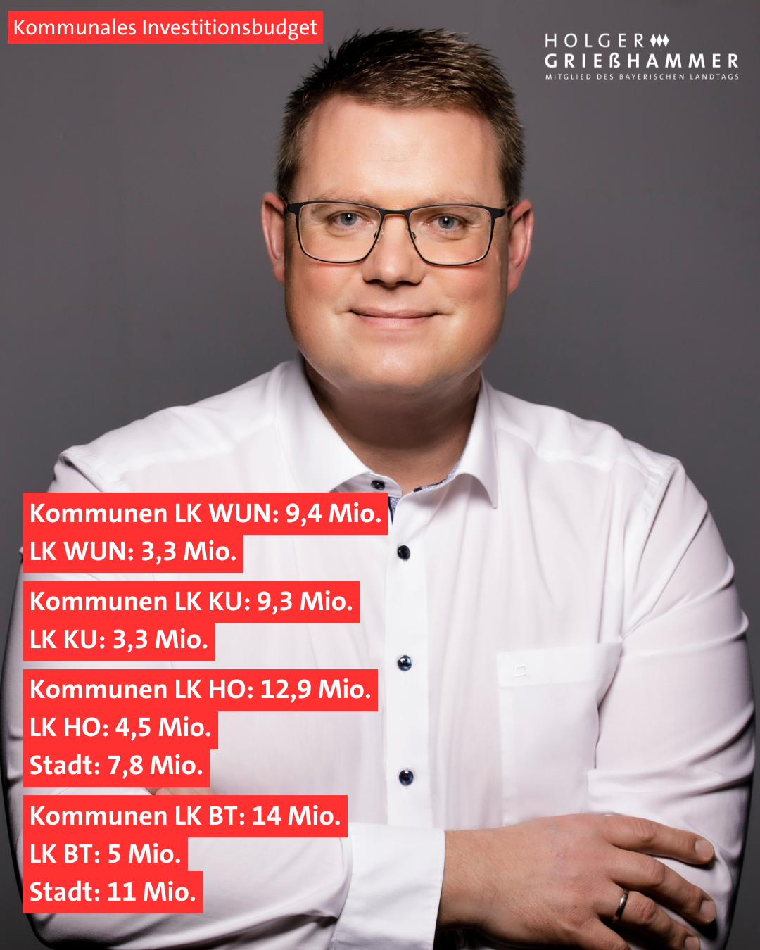Kommunaler Finanzausgleich 2024: MdL Grießhammer begrüßt Auswirkungen des Spitzenniveaus von 11,4 Mrd. Euro auf die Landkreise Wunsiedel, Kulmbach, Bayreuth und Hof