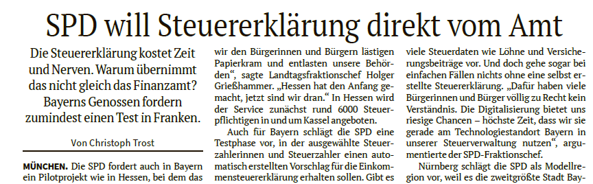 „SPD will Steuererklärung direkt vom Amt“