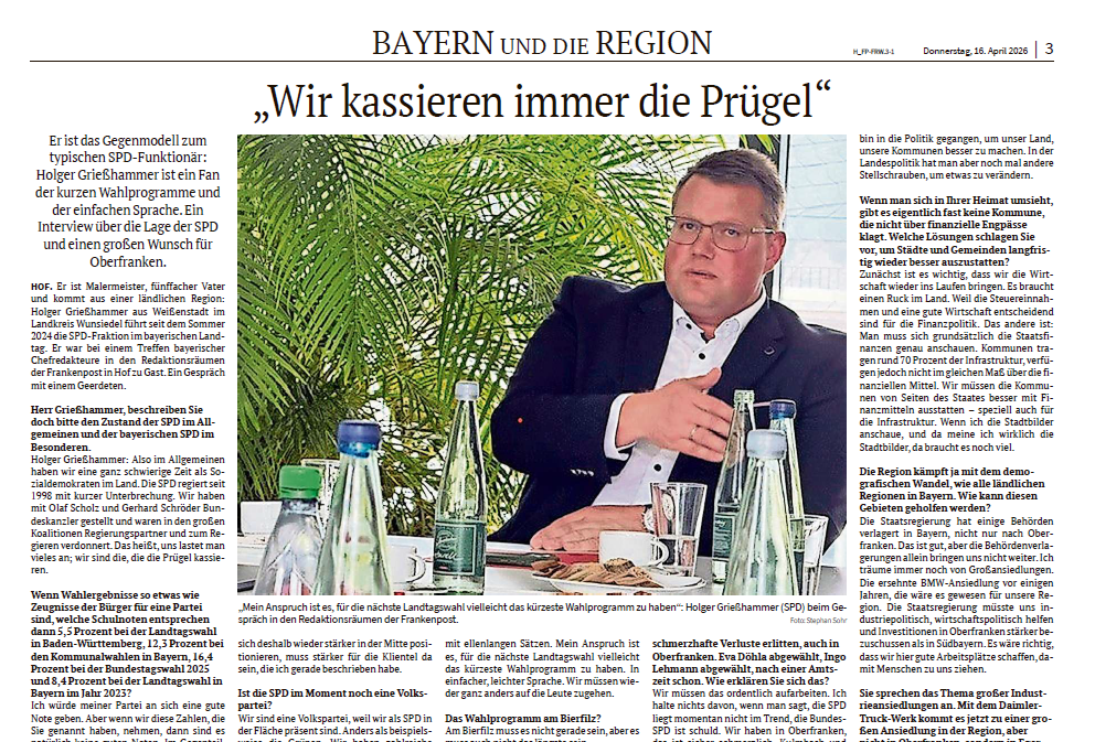Frankenpost – Bayern-SPD: Neuer Fraktions-Chef kommt aus Weißenstadt