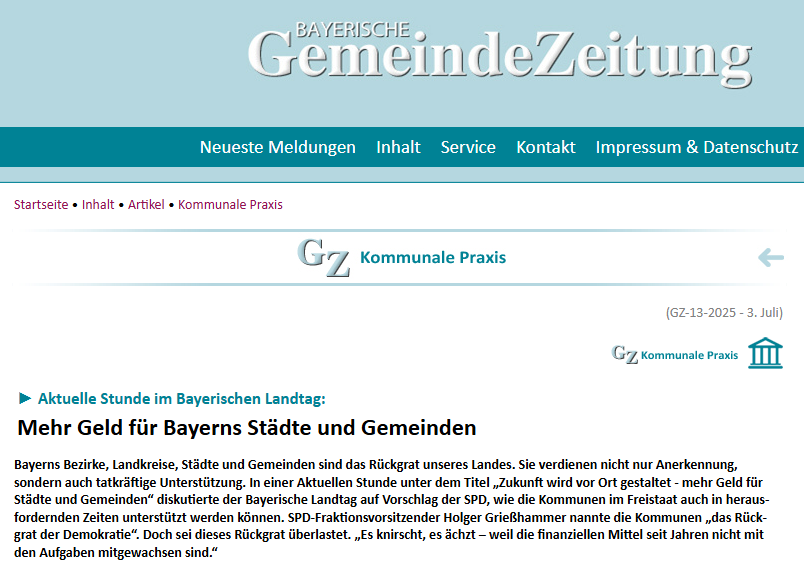 Bayerische Gemeindezeitung: „Mehr Geld für Bayerns Städte und Gemeinden“