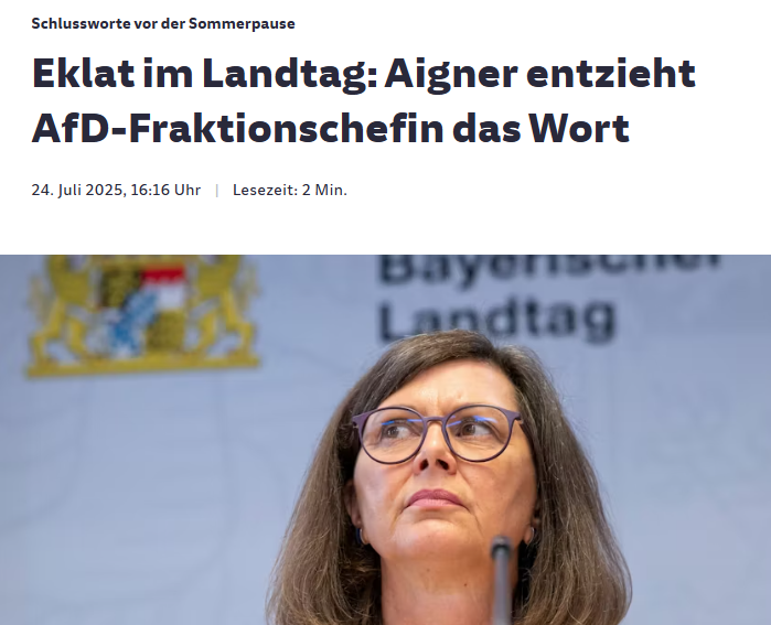 Eklat im Landtag: Aigner entzieht AfD-Fraktionschefin das Wort