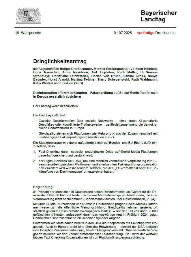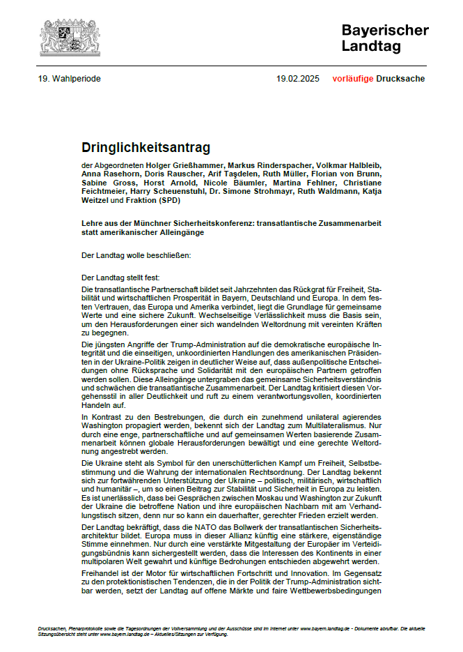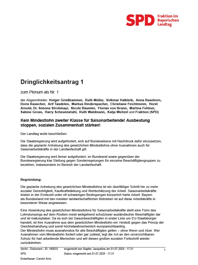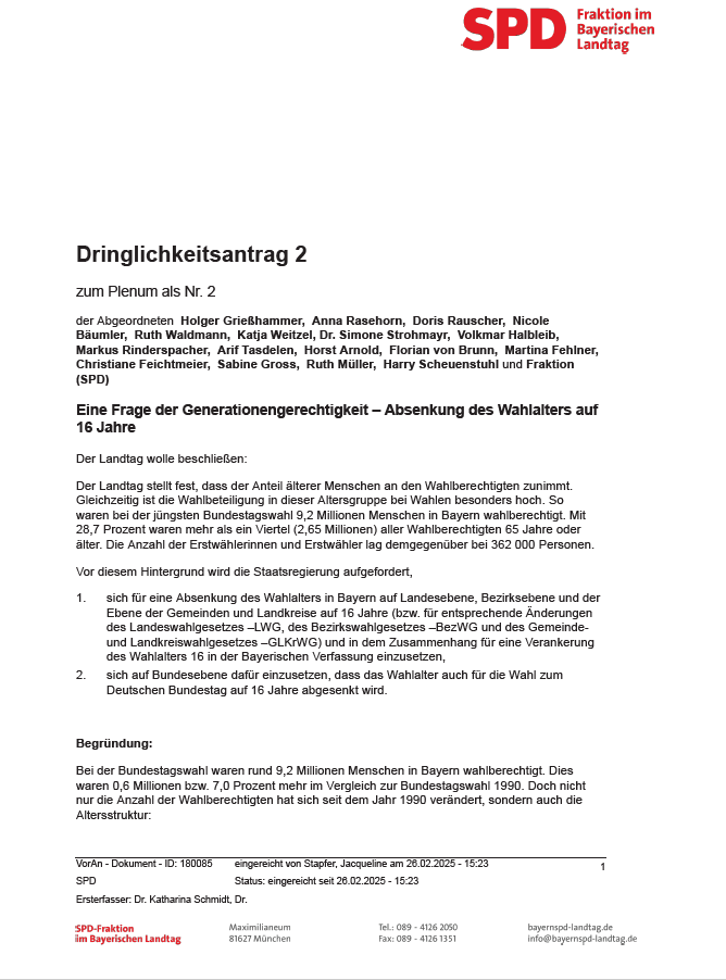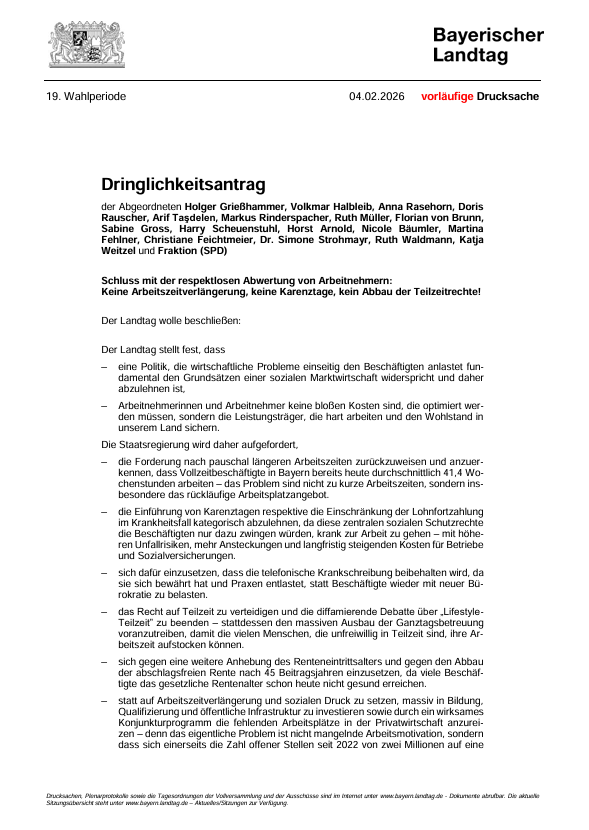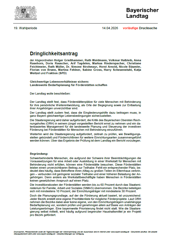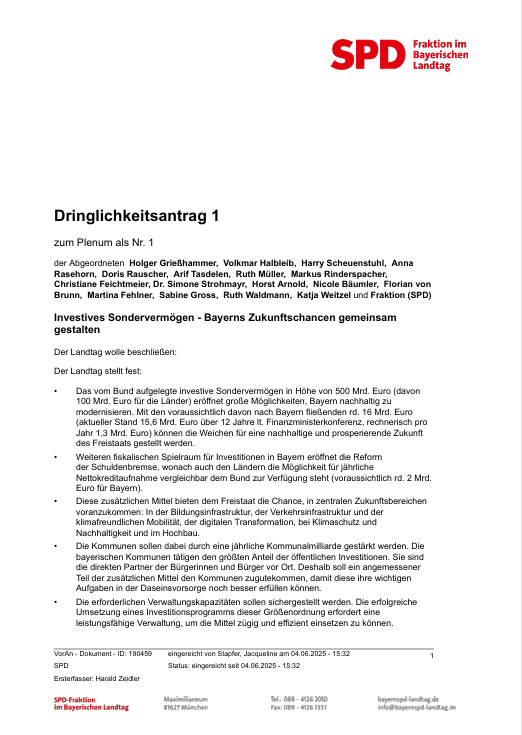 HIER finden Sie die aktuellen Dringlichkeitsanträge bzw. Initiativen der SPD-Landtagsfraktion.