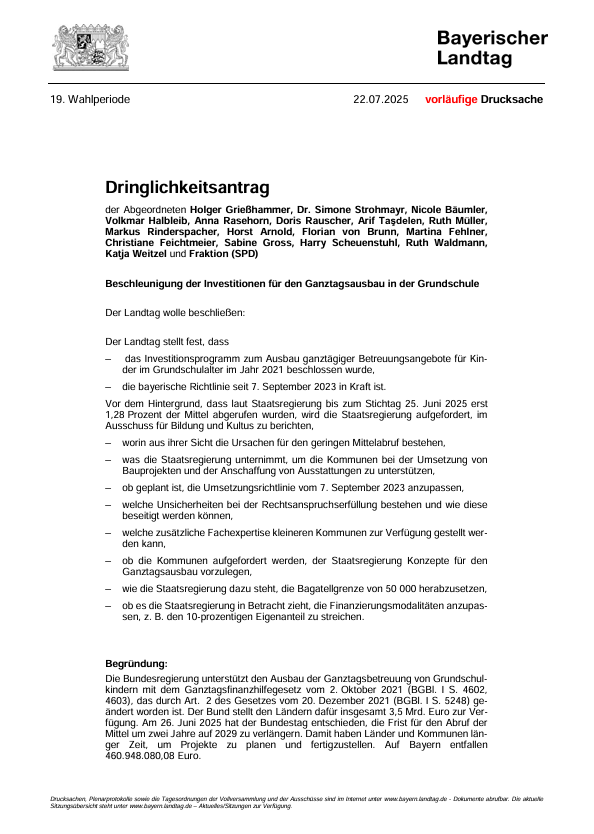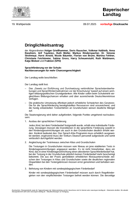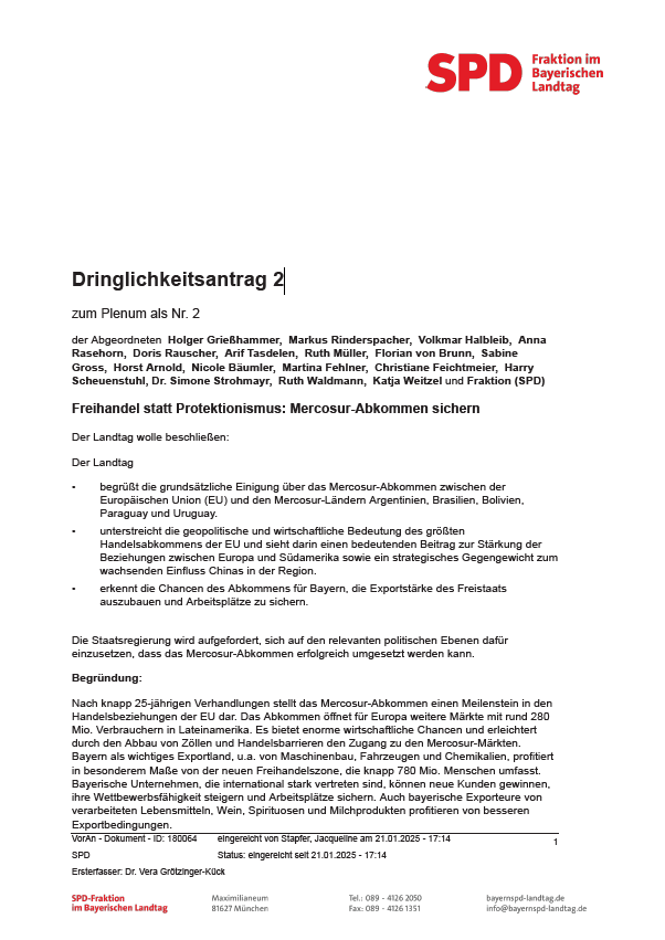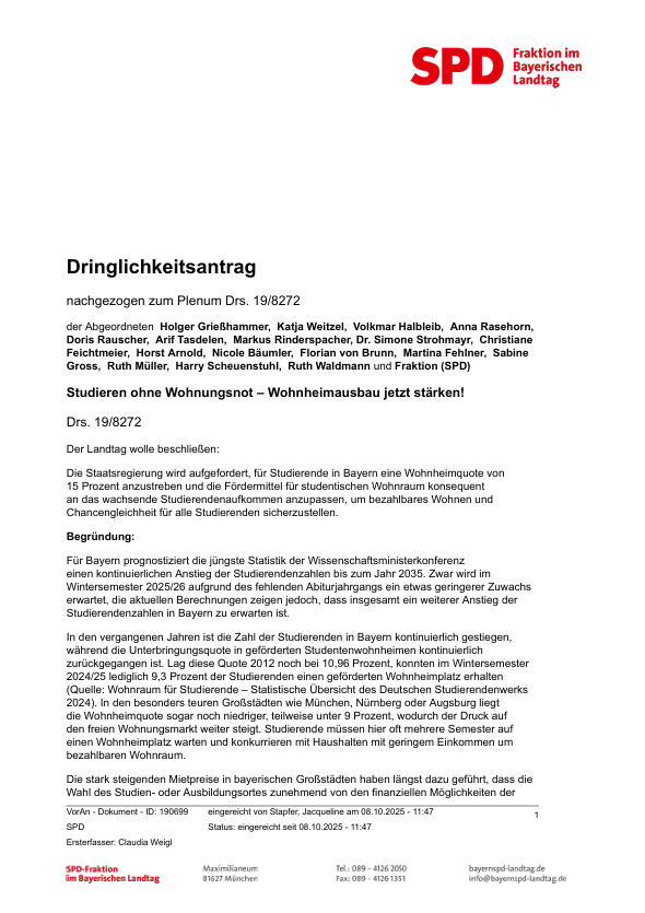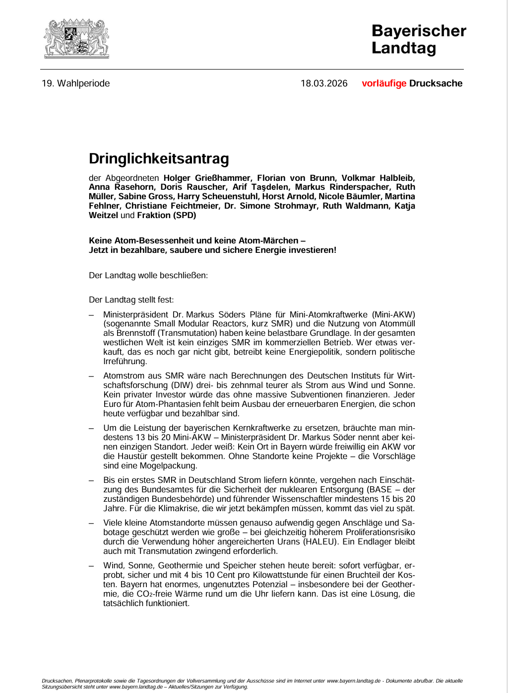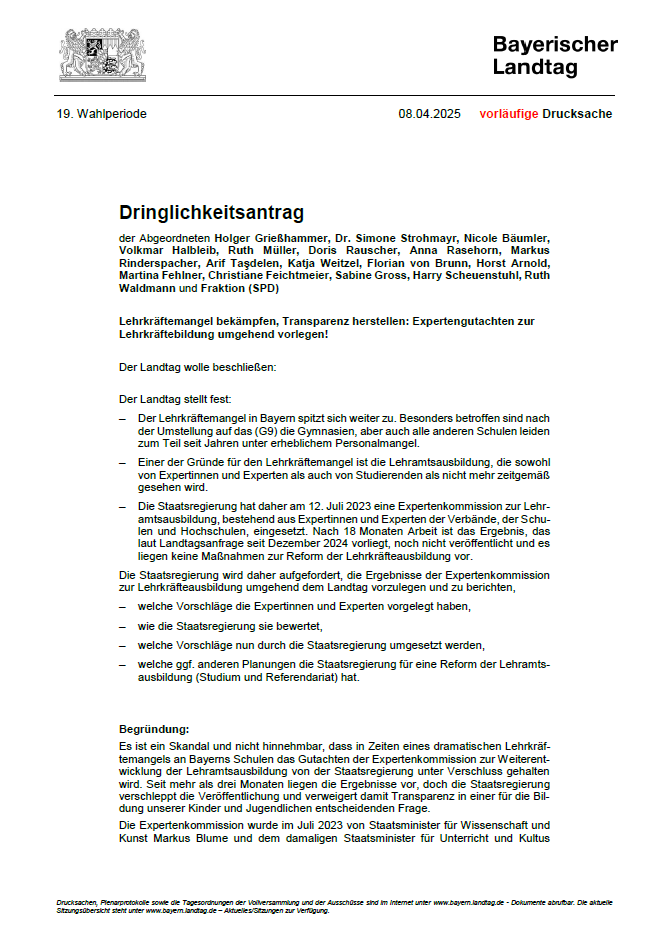 HIER finden Sie die aktuellen Dringlichkeitsanträge bzw. Initiativen der SPD-Landtagsfraktion.