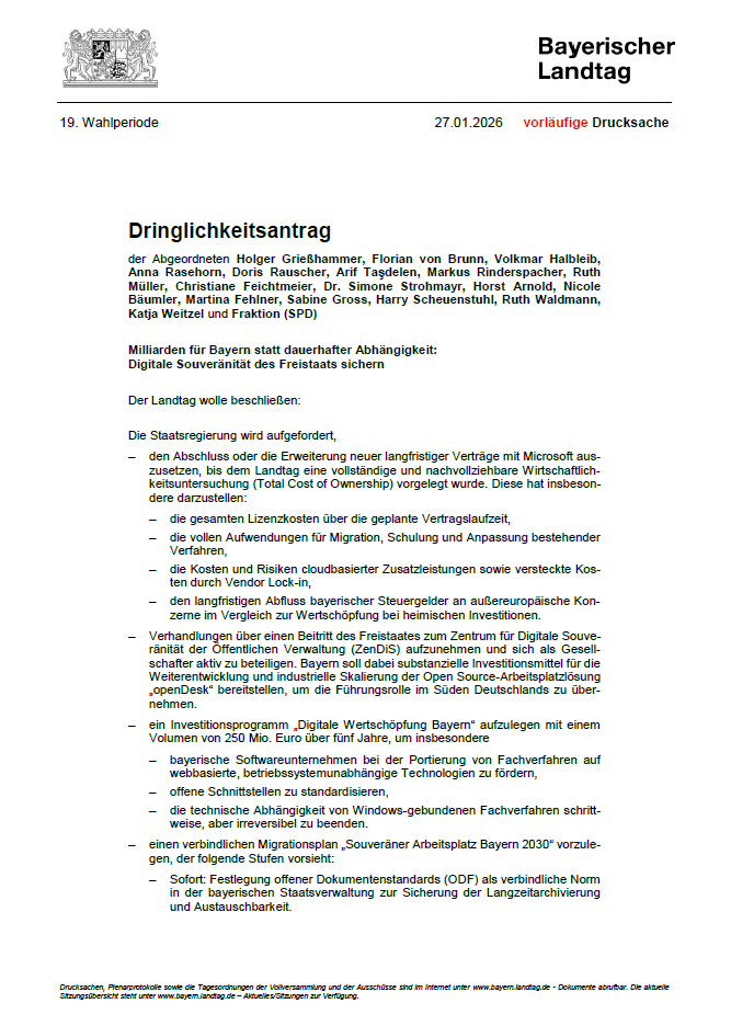 Milliarden für Bayern statt dauerhafter Abhängigkeit: Digitale Souveränität des Freistaats sichern