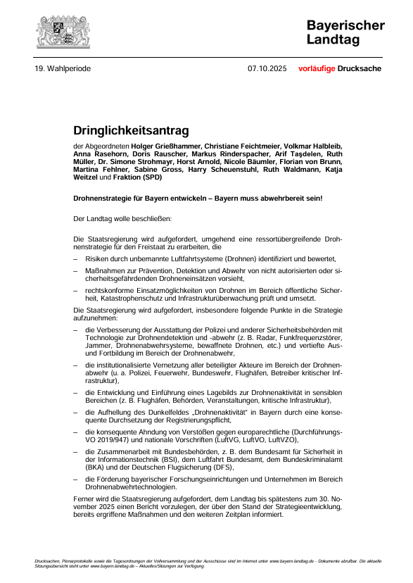 Drohnenstrategie für Bayern entwickeln – Bayern muss abwehrbereit sein