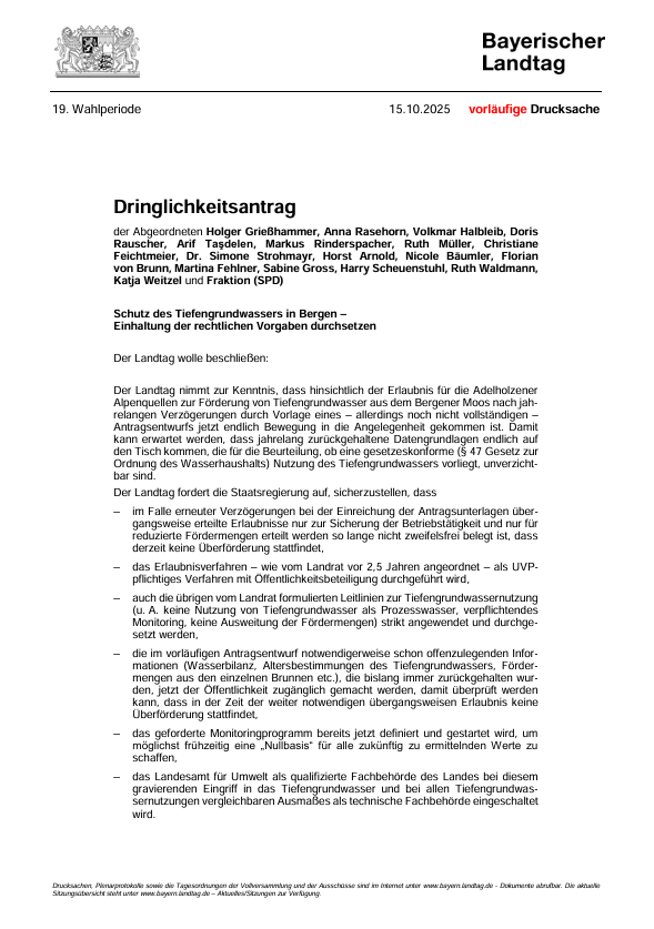 Schutz des Tiefengrundwassers in Bergen – Einhaltung der rechtlichen Vorgaben durchsetzen