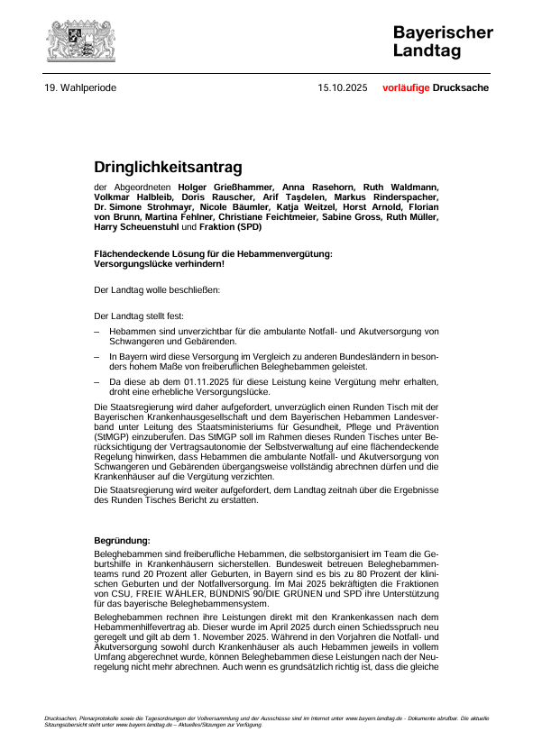 Hebammen und Geburtshilfe in Bayern unterstützen!