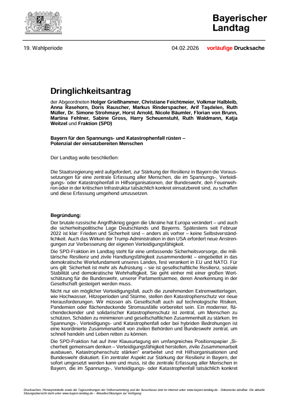 Bayern für den Spannungs- und Katastrophenfall rüsten – Potenzial der einsatzbereiten Menschen