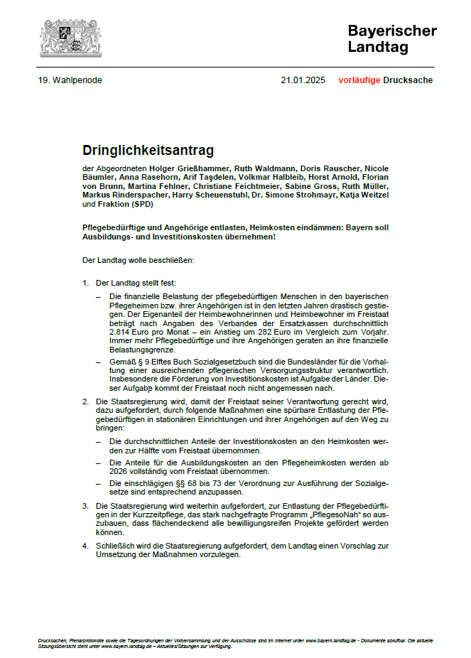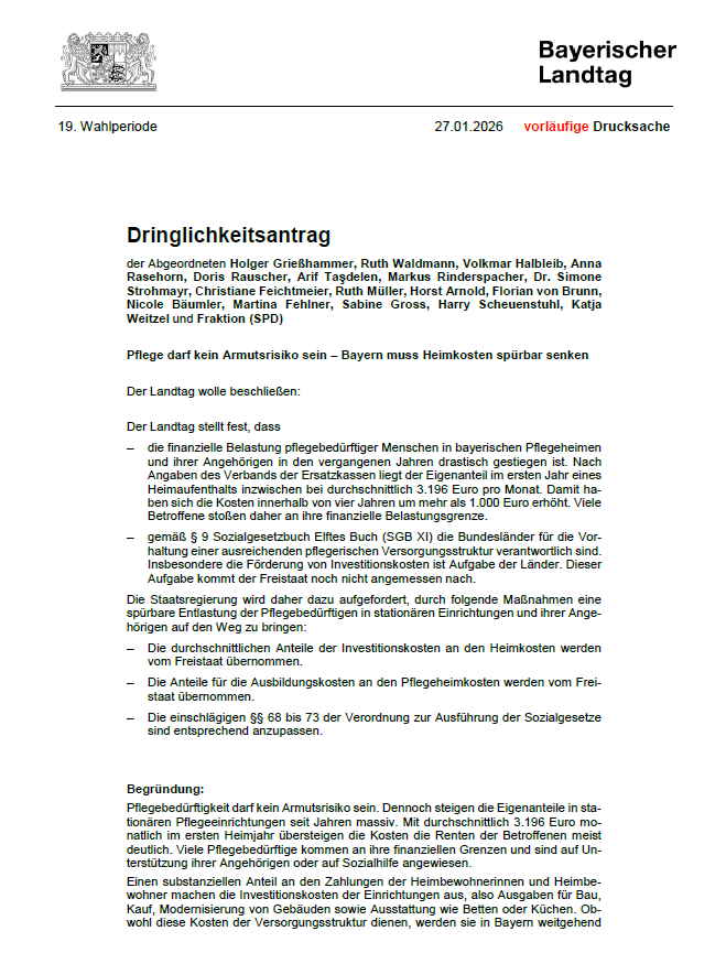 Pflege darf kein Armutsrisiko sein – Bayern muss Heimkosten spürbar senken