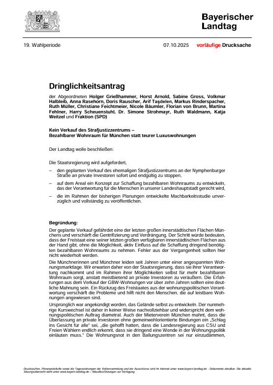 Kein Verkauf des Strafjustizzentrums – Bezahlbarer Wohnraum für München statt teurer Luxuswohnungen