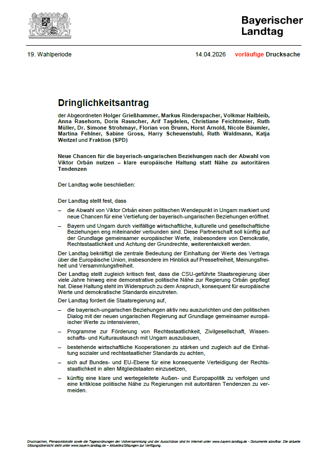 Neue Chancen für die bayerisch-ungarischen Beziehungen nach der Abwahl von Victor Orbán nutzen