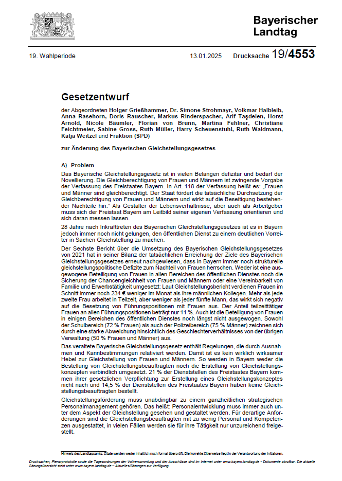 Gesetzentwurf zur Änderung des Bayerischen Gleichstellungsgesetzes