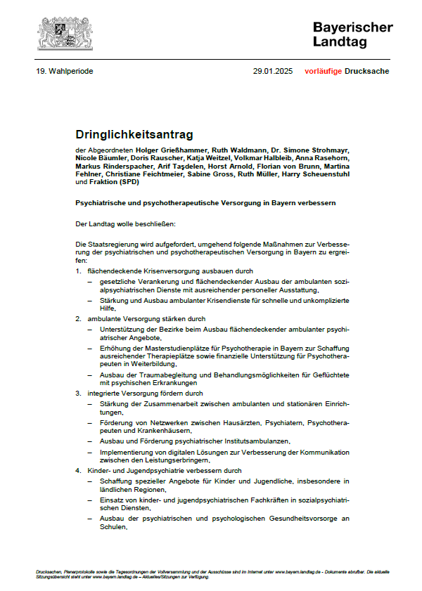 Psychiatrische und psychotherapeutische Versorgung in Bayern verbessern