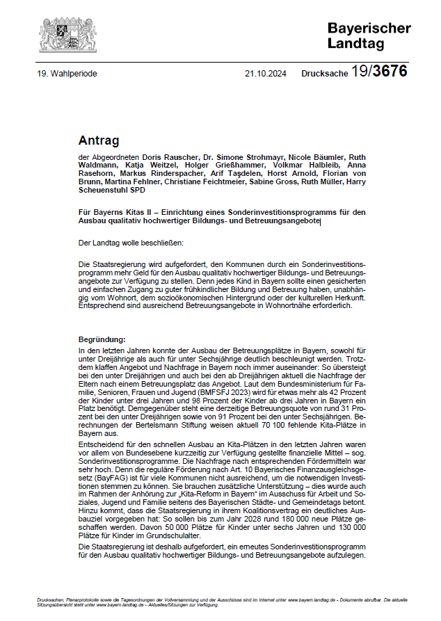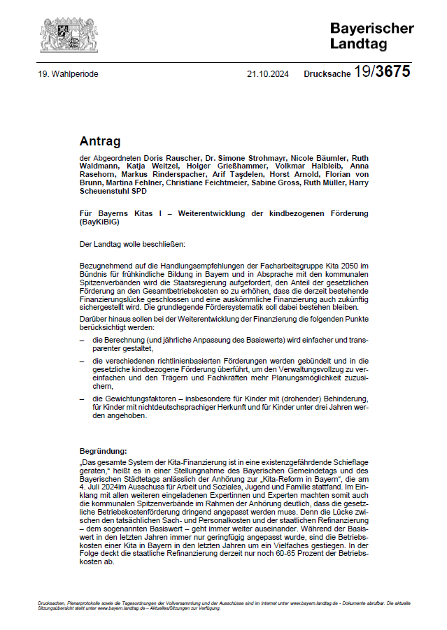 Für Bayerns Kitas I – Weiterentwicklung der kindbezogenen Förderung (BayKiBiG)